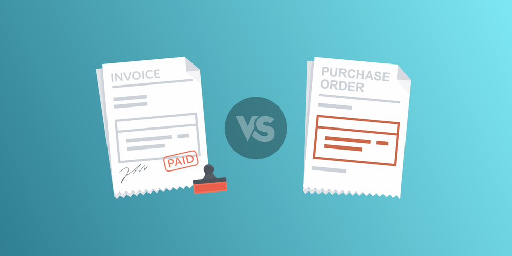 A purchase order is used to place an order, listing what the buyer wants to purchase. An invoice is sent after the order is fulfilled, requesting payment.